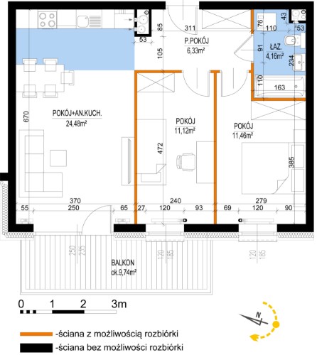 Powierzchnia 57,55 m2
