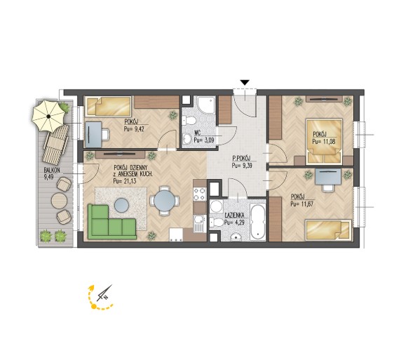Powierzchnia 70,07 m2